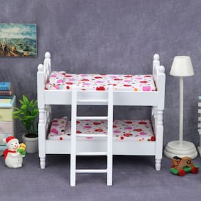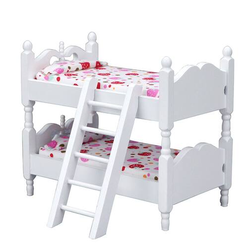 Tamanho: comprimento 13,7 x largura 8,1 x altura 12 cm Distância entre as camadas superior e inferior: 4,3 cm Material: placa de densidade de madeira Peso: 200 g Design encantador de beliche: beliche branco em miniatura com escada e linda roupa de cama com estampa de morango, ideal para cenas de quartos infantis de casas de bonecas. Material durável: feito de placa de densidade de madeira resistente com acabamentos lisos e um design realista, aprimorando a autenticidade de configurações em miniatura. Ajuste perfeito: projetado para casas de bonecas em escala 1:12, este beliche é ideal para aprimorar a decoração do quarto ou do teatro com seu design divertido. Nota de segurança importante: Brinquedo não infantil — não é adequado para crianças pequenas; mantenha longe do alcance de crianças pequenas para evitar engasgos ou ferimentos. Este produto é apenas um modelo de brinquedo, não para uso na vida real. Brincadeira imaginativa: ótima para fingir, contar histórias e enriquecer a imaginação das crianças, ao mesmo tempo em que expande sua coleção de móveis para casas de bonecas.