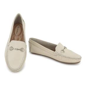 Mocassim Dockside Feminino Couro Cabedal Metal Bico Redondo - 35 - Bege Claro