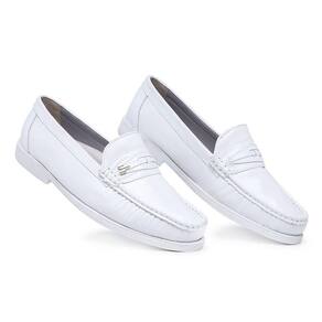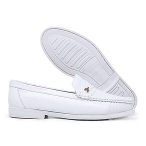 Mocassim Em Couro Masculino Moda Casual Sola Macia Costura Reforçada Passeio - 43 - Branco