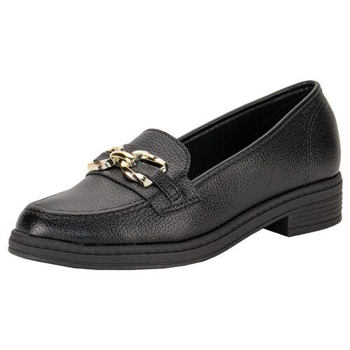 O Mocassim Feminino Beira Rio é confeccionado em Napa Floather Napoli de alta qualidade com detalhe metalizado no cabedal, acabamento em costura, forro interno em têxtil, palmilha em PU e solado em borracha antiderrapante com salto baixo de três centímetros e meio.
