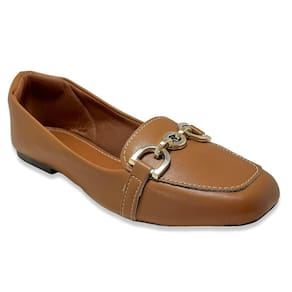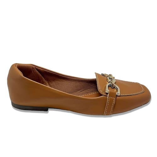 Mocassim Feminino Comfort Bico Quadrado Detalhe Elos Dourados - 37 - Marrom Cacau