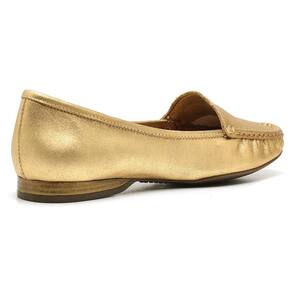 Mocassim Feminino Couro Bico Redondo Metalizado Confortável - 39 - Amarelo Ouro