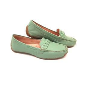 Mocassim Feminino Couro Casual Dia a Dia Conforto Leve Macio - 34 - Verde