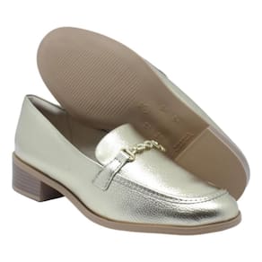 Com uma altura de salto baixa de 3 cm e um bico arredondado, este mocassim feminino combina estilo e praticidade, tornando-o perfeito para uso diário ou para ocasiões especiais. Seja para um evento sofisticado ou para dar um toque de brilho ao seu visual casual, este mocassim dourado é a escolha certa para quem busca um calçado que une conforto, estilo e versatilidade.