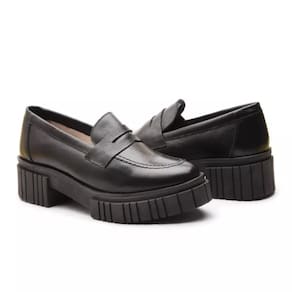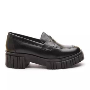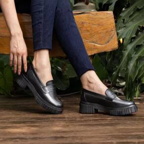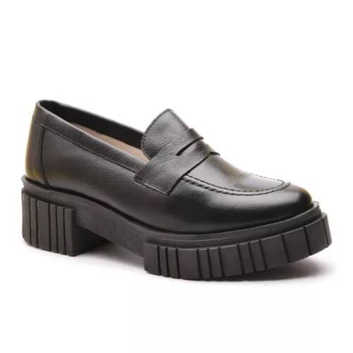 Mocassim Feminino em Couro Tratorado Casual Moda Confortável - 35 - Preto