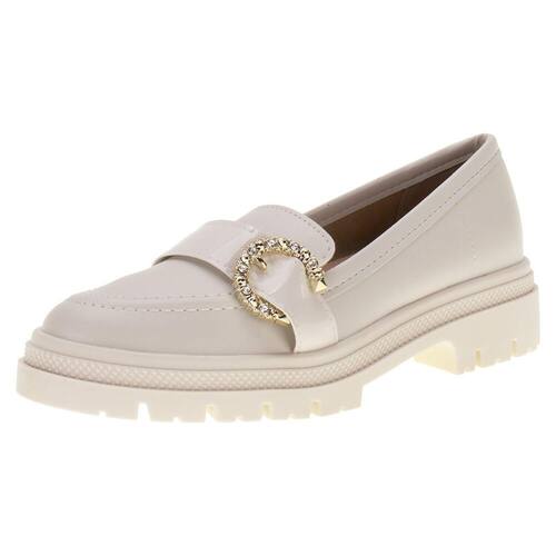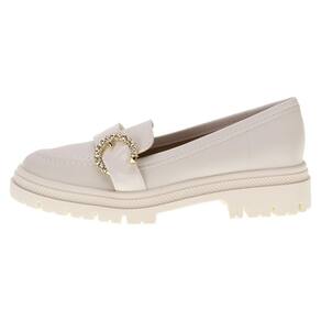 O Mocassim Feminino Moleca é confeccionado em Napa Turim com detalhes em tira envernizada e fivela com aplicação de strass, acabamento em costura, forro interno em têxtil, palmilha em PU e solado em borracha tratorada com salto de quatro centímetros.