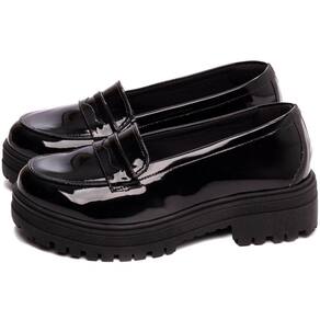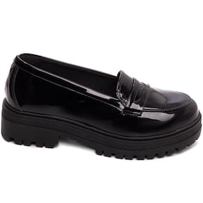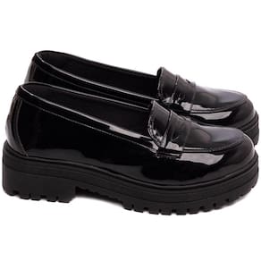 Material: Verniz Preto Enfeite: Detalhe em tira Verniz Preto Palmilha: 4 mm de Espessura, Espuma em E.V.A, Revestida em Verniz Preto e Taloneira Preto Forro: Cacharrel, material espumado para maior conforto, na cor Preto Sola em P.V.C Tratorada na cor Preto com 4 cm de altura na parte traseira e 2,5 cm de altura na parte da frente.