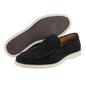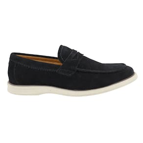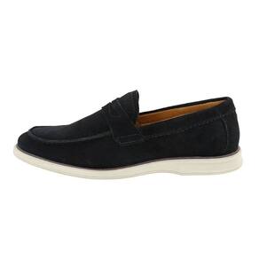 Mocassim Loafer Masculino Couro Camurça Nobre Calce Facil Old Money Solado TR Confortavel Macio - 44 - Preto