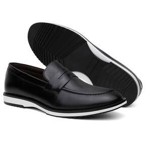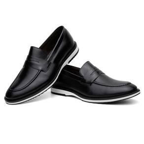 Mocassim Masculino Couro Bico Redondo Calce Fácil Casual - 42 - Preto