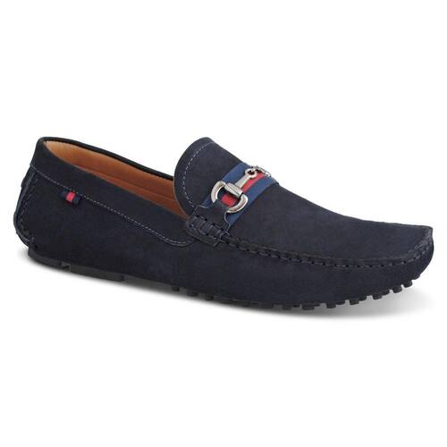 Mocassim Masculino Couro Calce Fácil Casual Confortável - 37 - Azul Marinho