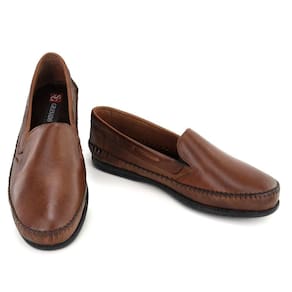 Mocassim Masculino Couro Liso Bico Redondo Calce Fácil - 44 - Marrom