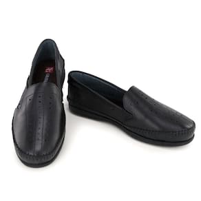 Mocassim Masculino Couro Perfuros Calce Fácil Casual - 38 - Preto