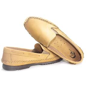 Mocassim Masculino Couro Sapatilha Calce Fácil Conforto - 38 - Bege Claro