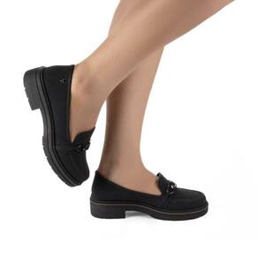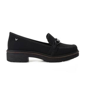 Mocassim Mississipi Salto Baixo Corrente Feminino Preto, confeccionado em material sintético com detalhe metalizado no cabedal. O mocassim é um calçado versátil, moderno e prático. Utilizado em ocasiões casuais, dia a dia, passeios, lazer, entre outros. Combina com calça, saia, shorts ou vestido.