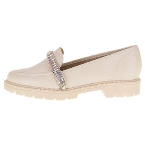 O Mocassim Salto Baixo Beira Rio é confeccionado em Napa Turim com acabamento em costura e detalhe em strass no cabedal. Este modelo possui forro interno em têxtil, palmilha em PU e solado em borracha antiderrapante. É um calçado atemporal que além de completar o look com elegância, acomoda os pés confortavelmente.