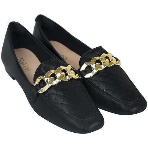 O Mocassim Sua Cia Ivone Feminino é confeccionado em Napa Soft de alta qualidade, com detalhe em costuras na parte superior do cabedal e enfeites de corrente metalizado. Seu bico é quadrado e palmilha não removível macia, um estilo tradicional para combinar com seus looks do mais casual ao chic. Seu solado é feito em material emborrachado antiderrapante para mais segurança. Extremamente confortável, é um calçado versátil e prático. Um coringa no armário para criar diversas composições. Perfeito pra você!