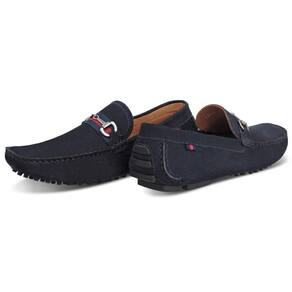 Mocassim Tratorado Masculino Couro Espumado Macio Solado Borracha Gel Detalhe Metal - 38 - Azul Marinho