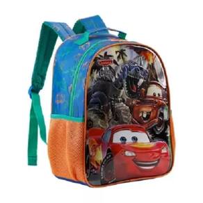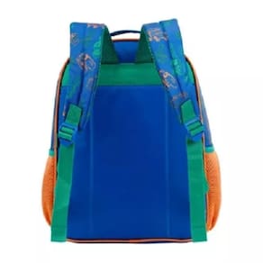 Em tamanho 16 , produzida em poliéster resistente e estampado. Painel frontal em PVC vincado - Compartimento principal amplo , 2 bolsos laterais mesh, zíper com puxadores personalizados, alça de mão em nylon com poliester e piping forrado. Alças acolchoadas com regulagem de tamanho para maior conforto.