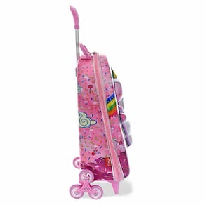 Mochila 3D de Rodinhas Infantil - Unicórnio - Cute Sweet - Rosa - Maxtoy: acessório indispensável para a volta às aulas e todo o material escolar. Também pode ser utilizada como mala infantil para viagens e passeios com a família. A Mochila de Rodinhas 3D Unicórnio Cute Sweet é super divertida e tem estampa em relevo com design exclusivo dos personagens favoritos da criançada. Possui amplo espaço, compartimento interno com divisórias e telas em malhas. Possui alça de mão e puxador regulável - que ajudam crianças e adultos a conduzirem a Mochilete 3D Unicórnio maior conforto para criança. Fecho em zíperes de metal de fácil deslize. • DIFERENCIAIS: - Sistema de 3 Rodinhas: facilidade em escadas e obstáculos Produzidas em PVC - Facilidade para subir escadas e calçadas Maior resistência e durabilidade Absorção de impacto - Tecnologia Maxgard: Superfície impermeável e de fácil limpeza Cor mais vibrante e aparência sempre nova Maior resistência e durabilidade Proteção contra sujeira - Espaçosa: Ampla abertura e grande espaço interno Dois compartimentos internos de malha. Com telinhas para guardar cadernos e livros sem que o material escolar seja danificado - Puxador regulável: alça retrátil de alumínio Mochilete infantil com puxador regulável para facilitar que adultos conduzam a mochila Os produtos escolares em 3D da linha Maxtoy, incluindo lancheiras, mochilas e malas com rodas especiais - que facilitam o transporte em escadas - são cada vez mais desejados, tornando-se referência mundial. INFORMAÇÕES: • Produto: Mala Infantil 3D de Rodinhas Cute Sweet • Marca: Maxtoy / Diplomata • Modelo: Cute Sweet • Coleção: Unicórnio • Personagem: Masha • Cor: Rosa • Dimensões (C x A x L): 30 x 45 x 20 cm • Peso (KG): 1.8 kg • Tipo: Mochilete Infantil em 3D de personagem • Conteúdo: 1 Mochilete 3D de Rodinhas • Recomendação: para crianças a partir de 03 anos de idade ESPECIFICAÇÕES: • Referência: 2718CM20 • Embalagem (C x A x L): 35 x 55 x 26 cm • Embalagem (Peso): 2.0 kg • Composição Material: - Estrutura: em EVA 80% e Poliéster 20% - Base: em PP - Carrinho: em Alumínio • Certificado: Órgãos Autorizados - OCP´S (Organismos de Certificação de Produtos) AVISO: - As imagens são meramente ilustrativas - Os tamanhos e medidas são aproximados - As cores e estampas dos produtos podem ter variações - As informações são de responsabilidade do fabricante ou fornecedor