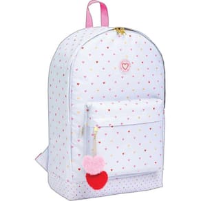 Mochila Academie Coracao Metalizado Azul Tilibra Marca: Tilibra Académie tem um mix completo, com estampas diversificadas e atemporais, para tornar as atividades do dia a dia mais práticas. A Mochila de Costas Académie Corações Metalizados Azul é confeccionada em material resistente, com base reforçada, parte interna forrada e alças acolchoadas e ajustáveis para garantir conforto a quem utilizá-la. Possui dois compartimentos, sendo um bolso externo e uma abertura principal, com divisória interna, além de um bolso lateral, para armazenamento de materiais do dia a dia. Alça: Acolchoada, Ajustável Base: Forrada Bolso: Externo com fechamento em zíper, Frontal, Lateral Detalhe: Foil, Pompom Fechamento: Em zíper Formato: L 290mm x A 430mm x P 120mm : contra defeitos de fabricação Material: Poliéster Puxador: Em metal