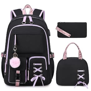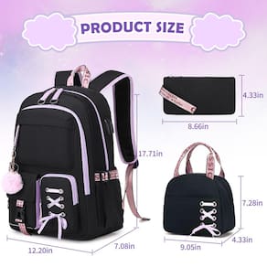 ACESAK Mochilas para meninas, adolescentes, crianças, escola primária, ensino médio, universitária, mochila escolar para livros, Preto, roxo - ?Kit de combinação perfeito?Encontre todas as suas necessidades de volta às aulas neste conjunto de mochila para meninas, lancheira e bolsa pencial. Volte para a escola com este conjunto! A elegante mochila para meninas acomoda seus itens essenciais de estudo, a lancheira traz refeições deliciosas e o estojo guarda suas canetas. Sinta-se bem ao viajar para a escola com esta mochila infantil requintada e de alta qualidade. - ?Leve e resistente à água?Feita com o melhor tecido Oxford 900D leve e durável e adornada com forro de poliéster acolchoado, esta mochila feminina combina perfeitamente durabilidade com elegância. Diga adeus ao desbotamento da cor, odores e preocupações ambientais. Fique tranquilo, seus livros e laptops permanecerão secos, mesmo na chuva, tornando sua viagem para casa sem preocupações graças a esta mochila feminina resistente à água. - ?Porta de carregamento USB?Esta mochila para meninas não é apenas uma mochila escolar – é o seu centro de carregamento em movimento! Com uma porta USB integrada e cabo de carregamento, você pode renovar seu telefone enquanto caminha, anda de bicicleta ou viaja. E adivinha? Há também um conector de fone de ouvido para você tocar suas músicas favoritas sem complicações. Caminhe, carregue e aproveite sua música – Absolutamente! É uma experiência tão legal, certo? - ?Grande capacidade?Medindo 31 x 18 x 45 cm, esta mochila para meninas oferece uma organização conveniente para todos os seus pertences. O compartimento principal espaçoso desta bolsa para escola pode armazenar laptops de 15,6 polegadas, livros didáticos, revistas, arquivos A4, o compartimento do meio com compartimentos para itens essenciais da escola, caderno e estojo, 3 bolsos externos frontais permitem acesso rápido a itens essenciais em movimento, 2 bolsos laterais para garrafa de água e guarda-chuva, bolso traseiro oculto com zíper mantém seu telefone seguro. - ?Perfeito para qualquer ocasião?Este conjunto de mochila para meninas adolescentes é feito sob medida para atender às necessidades das meninas que frequentam o ensino fundamental, médio ou médio. Além disso, complementa requintadamente várias atividades ao ar livre, como viagens, acampamento e caminhadas. O que está incluído? Uma mochila de qualidade para meninas, uma linda bola peluda, uma lancheira, uma bolsa lápis, juntamente com nossa garantia de 12 meses sem preocupações e atendimento ao cliente super amigável. Idade recomendada: acima de 3 anos.