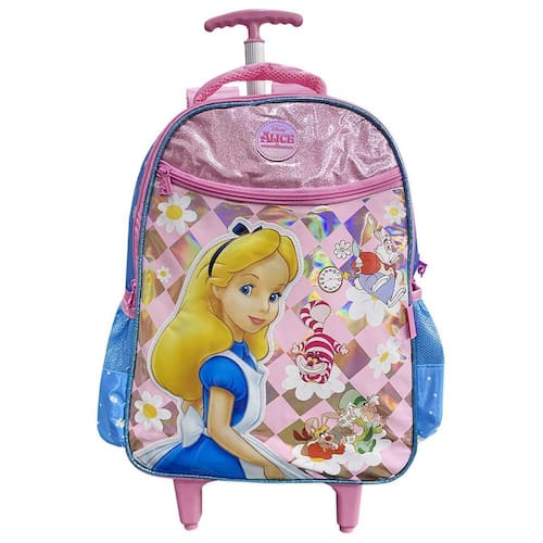 Prepare-se para uma aventura mágica no mundo da fantasia com a Mochila De Rodinhas Da Alice no País das Maravilhas Essa mochila é perfeita para os pequenos exploradores que amam a história clássica de Alice e seus amigos.