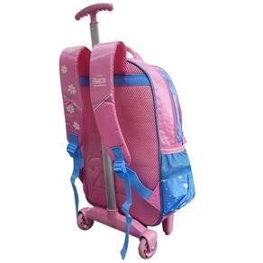DESCRIÇÃO DA MOCHILA: - Rodinhas De Silicone. - Alças acolchoadas e ajustáveis. - Alça de mão. - Dois Bolsos laterais. - Zíper Duplo personalizado. - Compartimento principal com amplo espaço interno para livros, cadernos e materiais escolares. - Bolso frontal para organização.