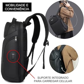 Para garantir maior proteção contra furtos, o compartimento principal possui uma trava de zíper com senha numérica, oferecendo mais segurança para seus pertences em ambientes movimentados, como transporte público, aeroportos e escritórios.