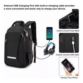 a mochila para laptop tem uma porta de carregamento USB e um cabo de carregamento integrado. Carregar seu telefone f cil e voc nem precisa desligar o telefone com o qual est em contato. Os fones de ouvido t m orif cios externos para cabos, permitindo que você ou?a m sica facilmente enquanto caminha. (Observe que esta mochila para laptop de 15,6 polegadas n?o inclui baterias e fones de ouvido externos.)