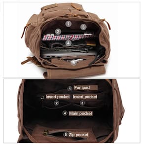 Mochila vintage AUGUR Canvas — Mochila de viagem de lona retrô de alta capacidade Mochila de viagem para caminhadas — GRANDE CAPACIDADE: o tamanho da mochila de lona é de cerca de 18,1* 12,6* 7,8 polegadas, grande o suficiente para acomodar itens essenciais do dia a dia, como laptop, notebook, livro, iPad, almoço, câmera, equipamento de barbear, roupas ou outros acessórios de que você precisa. - MATERIAIS DE ALTA QUALIDADE: nosso tecido de lona duradouro de qualidade premium e couro PU, apresenta um design clássico e elegante com aba de fecho de botão, detalhes vintage em latão, alça de ombro ajustável, aperta e solta facilmente. - VÁRIOS COMPARTIMENTOS: Esta mochila tem 2 bolsos laterais, 1 bolso frontal, 1 compartimento grande com 2 pequenos compartimentos internos. O espaçoso compartimento principal com fecho de cordão. Bolsos menores são ideais para acessórios pequenos, como celular, chaves, garrafa de água, estojo, etc. Multiuso: uma ótima mochila para caminhar, acampar, viajar, fazer compras, atividades ao ar livre ou levá-la para o trabalho. Mochila de lona de alta densidade, mochila, mochila vintage para homem e mulher Classificação etária: 3 anos ou mais — Melhore: bolso antifurto traseiro para guardar objetos de valor, como carteira, celular ou dinheiro, com segurança