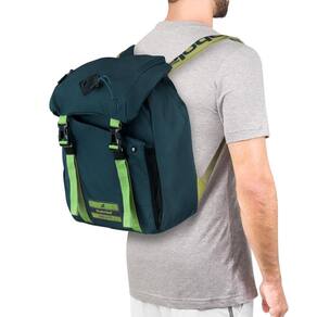 - Detalhamento: Mochila com 2 compartimentos, o compartimento principal sem divisória, com fechamento elástico, outro compartimento frontal que comporta até 1 raquete sem capa, um bolso na parte de cima com fechamento em zíper, um bolso na lateral em mesh, alças ajustáveis e acolchoadas para maior conforto, alça de mão;
