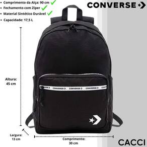 Pronta para a rotina do dia a dia ou das aventuras do fim de semana, a mochila Converse Go é confeccionada em poliéster e apresenta um design otimizado para fácil acesso, feita para carregar tudo: garrafas de água nos bolsos laterais, notebook no bolso grande com compartimento interno e pequenos itens nos dois bolsos frontais organizadores. A peça possui um bolso grande principal com divisória interna e dois bolsos menores na parte da frente, para armazenar itens menores. O símbolo Star Chevron aparece estampado na parte da frente para complementar o visual. Já os fechamento dos bolsos frontais recebem um detalhe em branco com a escrita Converse e o símbolo da marca. E para finalizar suas características, a mochila traz alças acolchoadas e ajustáveis para personalizar ao seu modo.