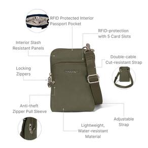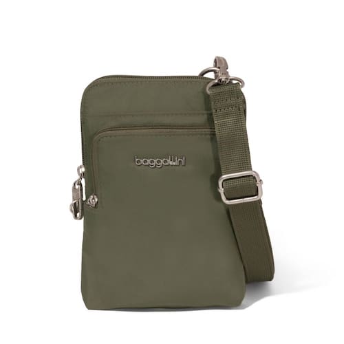 Baggallini Bolsa tiracolo antifurto Securtex, Tomilho - Leve e resistente à água: Feita com material resistente à água, esta bolsa tiracolo antirroubo é fácil de limpar o local; e com apenas 227 g e medindo 14 cm de largura x 19 cm de altura x 2,5 cm de profundidade, é a escolha perfeita e leve. - Proteja sua paz de espírito: com a tecnologia integrada de bloqueio RFID, você pode ter certeza de que suas informações pessoais estão seguras em viagens diárias e aventuras épicas. - SEGURANÇA RESISTENTE A SLASH: Proteja seus pertences e garanta que sua bolsa permaneça em perfeitas condições com tecido resistente a cortes e anti-roubo. - Zíperes de bloqueio: Desfrute de uma camada extra de segurança, cortesia de zíperes atraentes em partes iguais elegantes e funcionais! - Abertura com argolas: se você estiver ouvindo sua lista de reprodução favorita ou precisa recarregar, esta bolsa transversal antirroubo possui uma abertura com ilhós para conveniência em movimento.