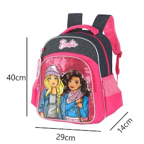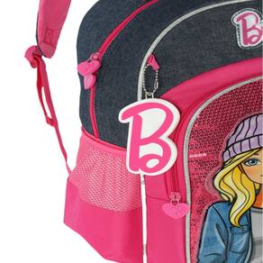 Mochila Escolar de Costas Barbie   A Mochila de Costas da Barbie Luxcel é perfeita para transportar material escolar ou para uso diário. Com um design moderno e funcional, essa mochila possui amplo espaço interno, permitindo que você carregue tudo o que precisa de forma organizada e prática. Essa mochila possui um compartimento principal grande, com espaço de sobra para seus livros, cadernos e demais itens, um bolso frontal e além disso, conta com dois bolsos laterais para garrafa, ou outros objetos pequenos. Os puxadores do zíper são personalizados, adicionando um toque especial ao produto, além disso, a mochila possui uma alça de mão e alça de costas almofadadas. Fabricada em poliéster, essa mochila é resistente e durável.   Características da Mochila Escolar: - 1 Bolso Principal com bastante espaço - 1 Bolso Frontal - 2 Bolsos laterais para squeeze - Estampa em alto relevo - Alças de costas acolchoadas e ajustáveis - Alça de mão reforçada na parte superior - Puxadores personalizados - Taggy identificação - Chaveiro Barbie personalizado - Material: 100% Poliéster   Dimensões Aproximadas: - Altura: 40 cm - Largura: 29 cm - Profundidade: 14 cm