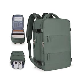 -?Compartimento para sapatos?: O compartimento para sapatos está localizado na parte inferior da mochila e o compartimento separado foi projetado para ser limpo e higiênico e não mancha as roupas. O espaço é grande o suficiente para um par de sapatos tamanho 9 dos EUA. Você pode colocar tênis, mocassins, sandálias ou chinelos. O compartimento para sapatos também tem duas aberturas para mantê-lo ventilado e sem odores.