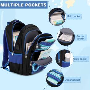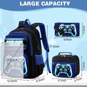Mochila infantil - ?Combinação perfeita? Ao comprar este conjunto de volta às aulas, você receberá uma mochila, uma lancheira e um estojo de lápis da mesma coleção. Se o seu pequeno vai para a escola primária, ensino médio ou ensino médio, este conjunto de mochila atende a uma variedade de exigências dos estudantes, também é perfeito para viagens, acampamento, caminhada e outras atividades ao ar livre. - ?Grande capacidade?Com seu tamanho de 44 x 31 x 16 cm e 8 bolsos diferentes, esta mochila infantil para meninos tem muito espaço para manter seus pertences organizados. Dois compartimentos principais grandes adequados para livros, estojos de caneta, roupas finas, laptops, etc. E os 3 bolsos frontais oferecem fácil acesso a itens menores, como chaves e cartões de identificação. Dois bolsos laterais guardam garrafas de água e guarda-chuvas. - ?Design ergonômico?A mochila para meninos é projetada com a ergonomia em mente, com alças de ombro ajustáveis e respiráveis e uma fivela no peito para distribuir uniformemente o peso e reduzir a pressão no ombro. A parte traseira acolchoada com ar a torna confortável de usar por longos períodos sem suar. Além disso, as tiras refletivas em nossas alças de ombro tornam mais seguro para as crianças caminharem à noite. - ?Materiais duráveis?A mochila escolar é feita de tecido oxford de alta densidade, o material tratado a torna impermeável, resistente à cor, inodora, fácil de limpar e saudável. Pode proteger todos os itens da mochila de garoa. As alças grossas, alças fortes, zíperes suaves e costuras reforçadas garantem que esta mochila resista ao teste do tempo. - ?Atendimento ao cliente?: Garantimos nossos produtos com uma garantia vitalícia e excelente atendimento ao cliente. Se você encontrar algum problema com sua mochila, não hesite em entrar em contato conosco por e-mail.