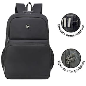 Mochila bolsa notebook laptop anti furto senha cadeado usb Cor: preto Mochila notebook anti furto com senha e entrada para cabo usb acompanha cabo usb Características: Mochila antifurto de costas ideal para notebook, escola, faculdade, trabalho, viagens, passeios, academia, motociclistas etc. Própria para organizar roupas, notebooks, cadernos, livros, ferramentas, acessórios para o trabalho dentre outros itens. Especificações técnicas: - cadeado anti furto com senha - etiqueta para escrever nome e telefone - entrada usb para powerbank - leve - reforçada - confortável - produto e de alta qualidade; - design clean; - ideal para notebooks; - material 100% poliéster - alça de mão acolchoada - 3 compartimentos - 1 bolso frontal - bolsos laterais porta garrafa - zíperes duplo cursor, resistentes, e personalizados - compartimento para notebook Peso:600g Comprimento; 35cm; Altura: 46cm; Largura: 16cm; Conteúdo da embalagem: - 01 mochila; - 01 cabo usb macho/fêmea Marca: Não Informado