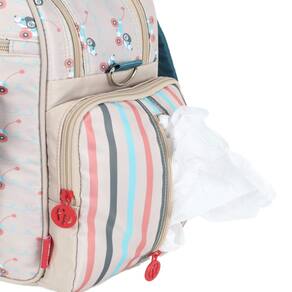Compartimentos inteligentes: - 1 bolso principal espaçoso, com bolso interno, um bolso lateral térmico interno, dois bolsos internos frontal com separação, ideal para manter todos os itens organizados. - 2 bolsos frontais externos, sendo um deles com fechamento em zíper, e outro bolso com separação e fechamento em fita aderente. - 2 bolsos laterais, sendo um com fechamento em botão de pressçao perfeito para mamadeiras, garrafinhas e acessórios, e outro com fechamento em zíper com acesso lateral, ideal para lenços umedecidos. - 1 bolso traseiro com fechamento em zíper, discreto e seguro para objetos pessoais.
