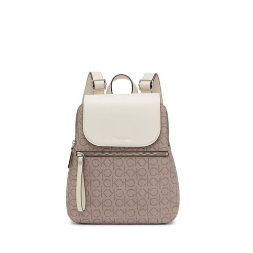 Calvin Klein Mochila feminina Reyna Signature Key Item Flap, amêndoa/castanho-acinzentado/branco - Monograma PVC de alta qualidade - 4 bolsos externos com zíper, 1 bolso interno com zíper, 1 bolso interno deslizante - Função de compartimento triplo - Eleve seu estilo com nossas roupas modernas; encontre sua roupa de moda favorita para combinar perfeitamente com cada roupa e todas as estações - Exalam confiança: exiba esta roupa moderna em qualquer ocasião; fácil de usar como uma das suas roupas essenciais de viagem