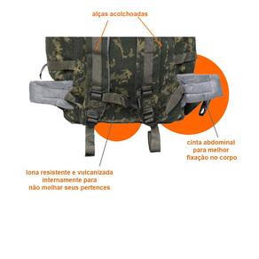 Mochila de lona resistente e vulcanizada internamente para não molhar seus pertences,