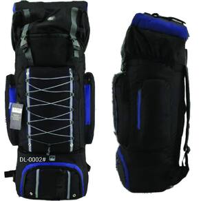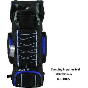 Mochila feita de poliéster reforçado e vulcanizado internamente e forrada, e com material anti transpirante Alças de ombro reforçada e acolchoada e revestida Alças ajustáveis frontal inferior para saco de dormir e superior para manta 2 bolsos laterais e 2 bolsos frontais + o compartimento de armazenagem principal bolso principal Compartimento inferior para calçados e outros . 34x27x95cm