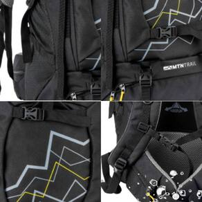 Fabricada em poliéster de alta qualidade, a Mochila Camping Trilha Reforçada Amplo Compartimento 60L possui as seguintes especificações: