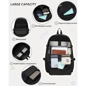Melhores presentes para mulheres e homens, mochila funcional com vários bolsos, compartimento separado para laptop: serve para laptops de 14 a 16 polegadas - ?Tamanho grande?O tamanho da mochila de computador para meninas é de 31 cm x 15 cm x 44,5 cm (C x L x A), peso: 700 g. A bolsa para laptop com compartimento acolchoado serve para tablets de 35 a 40 cm. Esta mochila também junto com pingente de chave de boneca de pelúcia de urso branco torna a mochila escolar mais moderna e única - ?Material à prova d'água e zíper suave?A mochila campus é feita de Oxford resistente à água, ultraleve e de alta densidade, protegendo seus pertences mesmo em chuva forte ou neve. O fecho de zíper de metal é utilizado pelos zíperes de qualidade premium para garantir o uso duradouro - ?Seguro e confortável?O cinto atencioso em ambos os lados desta mochila para adultos pode criar uma base sólida de suporte se você estiver embalando muitas coisas na bolsa. As tiras grossas duráveis em forma de S são bem acolchoadas, ajustáveis e confortáveis de carregar. O cinto de bagagem na parte de trás pode ser colocado na bagagem/mala para tornar sua viagem mais conveniente - ?Vários compartimentos e grande capacidade?A mochila infantil grande tem 6 bolsos separados de tamanhos diferentes. O bolso externo com zíper diagonal de fácil acesso é para lenços, chaves, etc. Os bolsos frontais com zíper podem conter dispositivos de carregamento e outros itens necessários. O compartimento principal inclui uma capa acolchoada para laptop com bolsos para ferramentas. O bolso traseiro oculto com zíper protege seus itens valiosos de ladrões. Bolsos elásticos em ambos os lados são expansíveis para guardar garrafas de água e guarda-chuvas compactos para seu armazenamento diário - ?Para qualquer idade e ocasião?A bolsa leve para mochila é elegante o suficiente para uso casual, enquanto o design oferece multifuncionalidade. As mochilas básicas multiuso para a maioria das suas necessidades, fácil de combinar com suas roupas, adequada para viagens curtas, trabalho, compras, universidade, escola, viagens de negócios, etc. É a melhor ideia para aniversário, dia dos namorados, dia de Ação de Graças, carnaval, prêmios justos, formatura, dia dos pais, Natal e dia dos namorados - Dicas: nosso material otimizado de fábrica de mochila (especialmente alça de ombro) e costura reforçada.