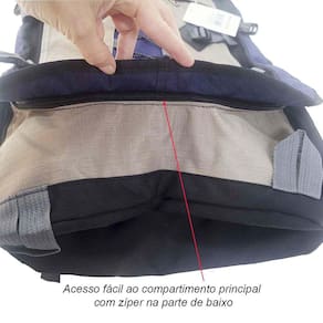 - Acesso fácil ao compartimento principal com zíper na parte de baixo e de cima: Além do fechamento por cordão, a mochila também possui zíperes na parte de baixo e de cima, permitindo um acesso rápido e fácil aos seus itens.