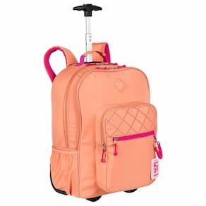 Coberta por um tom de pêssego, detalhes em cor-de-rosa e um pingente que dá um toque de charme, a mochila carrinho da coleção Sestini Lover apresenta um visual delicado e jovial para se encaixar na rotina de estudos. Para guardar seus cadernos, livros, estojos e outros materiais, conta com 2 compartimentos amplos que permitem uma melhor organização, enquanto os 2 bolsos frontais são espaçosos e permitem o armazenamento de objetos menores, e o bolso lateral é perfeito para levar a garrafinha. Equipada com um carrinho reforçado em alumínio, rodinhas e alças de costas como um segundo plano, proporciona um transporte leve e confortável,