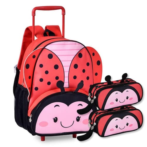 Mochila Carrinho Escolar Com Dois Estojos Feminino Delicado