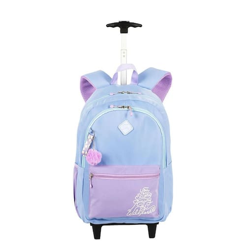 Complementando a rotina escolar com um estilo mais delicado, a mochila carrinho Sestini Lover combina tons de azul e lilás, enquanto os 2 pingentes de flores e pompom destacam a companheira perfeita para o dia a dia de uma estudante. São 2 compartimentos espaçosos para guardar todo o material escolar, mais um bolso frontal para pequenos objetos e bolso lateral em rede para garrafinha. Equipada com um carrinho reforçado em alumínio com rodinhas, pés de apoio e ajuste de altura, é perfeita para proporcionar uma experiência mais prática e leve no transporte. E se precisar de mais mobilidade em algum momento, é só vestir as alças espumadas que são facilmente guardadas em um bolso exclusivo nas costas.