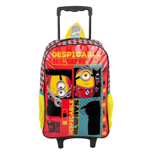 Os Minions invadiram a sala de aula e estão prontos para mais um ano de aventura e diversão A Mochilete Grande Meu Malvado Favorito 4 M - Colorido traz de volta as criaturas amarelas mais divertidas nessa mochila de rodinhas inspirada no 4 filme da franquia. O item possui um amplo compartimento principal para organização dos pertences, estampa exclusiva, boldos laterais em elásticos para squeeze, tag de identificação do pertence e carrinho de rodinhas embutido para facilitar o transporte
