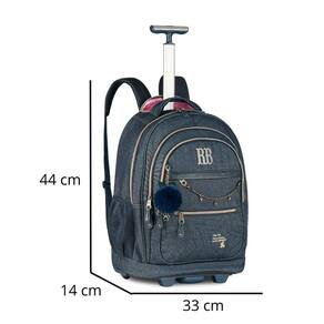 A mochila de rodinhas RB27023 da Rebecca Bonbon é puro charme e praticidade Confeccionada em jeans com matelassê e detalhes em PVC e silk em ouro velho, traz muito estilo em cada detalhe. Acompanha chaveiro de pompom com orelhinhas, plaquinhas de metal, correntinha com strass e ainda uma cartela de adesivos exclusivos. O compartimento principal é espaçoso, com divisórias acolchoadas para notebook e tablet, além de mais quatro compartimentos frontais com zíper, sendo um deles com divisórias internas para organizar tudo direitinho. Tem também bolsos laterais telados duplos. O mais legal é a versatilidade: pode ser Utilizado no carrinho com rodinhas resistentes, puxador de metal com duas alturas e base de apoio, ou nas costas, graças às alças acolchoadas que ficam escondidas em um compartimento traseiro, junto com proteção de rodas para não sujar as roupas. Conta ainda com alça de mão superior reforçada e puxadores de zíper personalizados. Dimensões aproximadas: 48x35x19cm. Marca: Não Informado Ean: 7908040487108