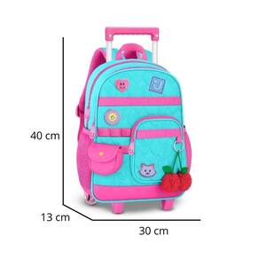 A mochila de carrinho da coleção Juju Teófilo é puro encanto e foi pensada para acompanhar as pequenas com muito estilo, conforto e praticidade na rotina escolar. Confeccionada em poliéster soft com acabamento em matelassê, ela traz patches emborrachados e de tecido que deixam o visual ainda mais delicado e divertido, além de acompanhar um charmoso chaveiro de cerejinhas e uma bolsinha exclusiva que completa o look de forma única. Possui compartimento principal amplo, ideal para organizar materiais escolares, pastas ou até uma troca de roupinhas, além de um compartimento frontal espaçoso com divisórias internas que ajudam a manter tudo no lugar. Na parte frontal, conta ainda com mais um bolso adicional de fácil acesso, perfeito para pequenos objetos, e bolsos telados nas laterais para garrafinhas ou itens de uso rápido. O carrinho com haste retrátil facilita o transporte no dia a dia, garantindo conforto também para crianças menores. As alças permitem o uso nas costas quando necessário, oferecendo versatilidade no uso. Dimensões aproximadas: 40x30x13cm. Marca: Não Informado